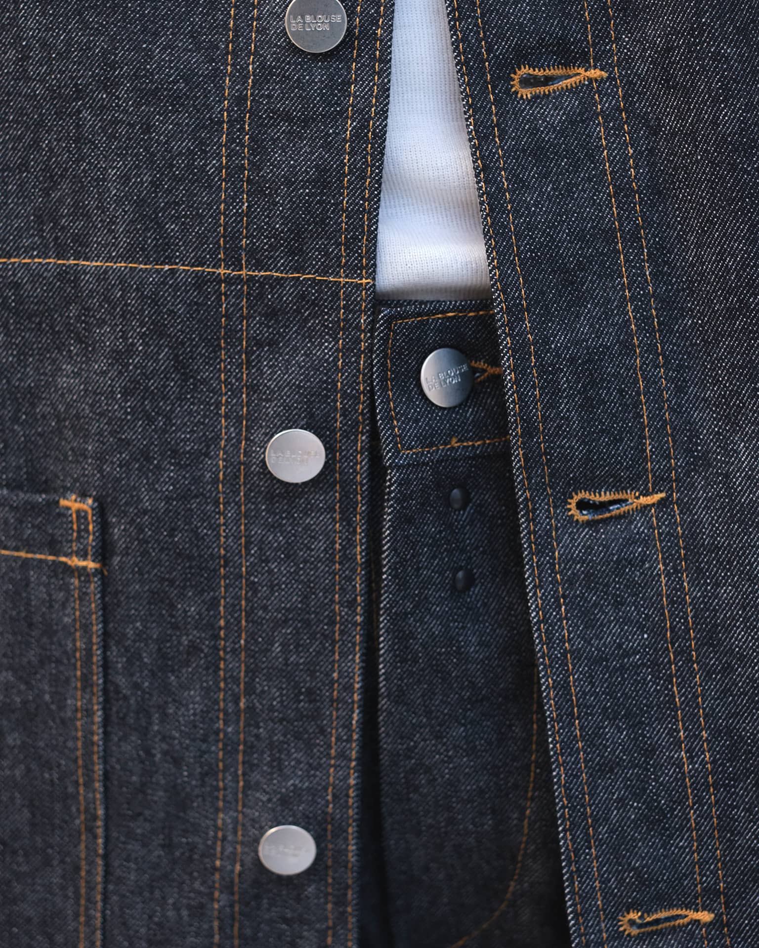 En travaillant avec La Blouse de Lyon, nous avons voulu rendre hommage à la généalogie du denim. Non pas un hommage au jean américain. Mais plutôt une revendication : le denim, à l’origine, c’est le « sergé de Nîmes ». Une affaire française, donc. Une toile robuste conçue pour durer, pas pour la consommation rapide.